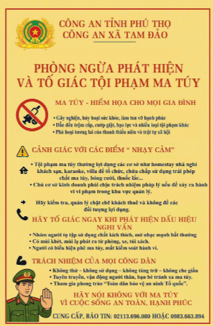 Thời gian gần đây, tình hình tội phạm và tệ nạn ma túy trên địa bàn cả nước nói chung, xã Tam Đảo nói riêng vẫn tiềm ẩn nhiều yếu tố phức tạp, ảnh hưởng trực tiếp đến an ninh, trật tự và đời sống Nhân dân. Trước thực trạng đó, Công an xã Tam Đảo đã chủ động triển khai đồng bộ nhiều biện pháp nghiệp vụ, tăng cường công tác tuyên truyền, quản lý, giám sát và kiên quyết đấu tranh với các hành vi vi phạm pháp luật liên quan đến ma túy.