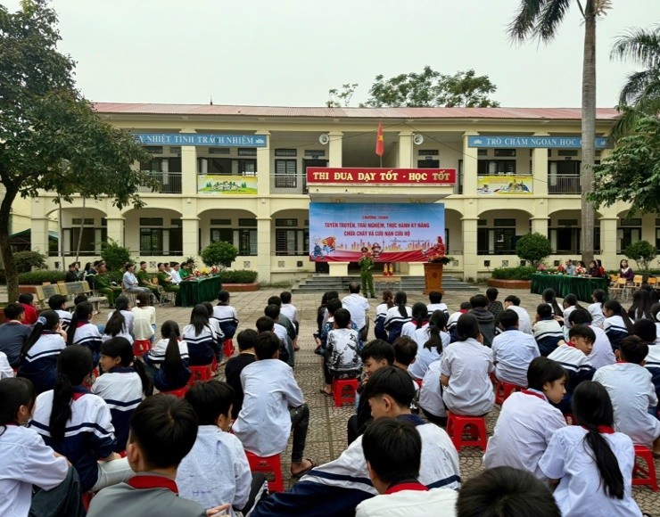 Nhằm nâng cao nhận thức và kỹ năng về phòng cháy, chữa cháy, cứu nạn, cứu hộ cho học sinh và cán bộ, giáo viên trong nhà trường, ngày 11/11/2025, Đội Chữa cháy và Cứu nạn cứu hộ (CC&CNCH) khu vực Vĩnh Tường, thuộc Phòng Cảnh sát Phòng cháy chữa cháy và Cứu nạn cứu hộ (PCCC&CNCH), Công an tỉnh Phú Thọ phối hợp với UBND xã Vĩnh Hưng và Trường THCS Yên Lập tổ chức chương trình tuyên truyền, trải nghiệm, thực hành kỹ năng về PCCC và CNCH.