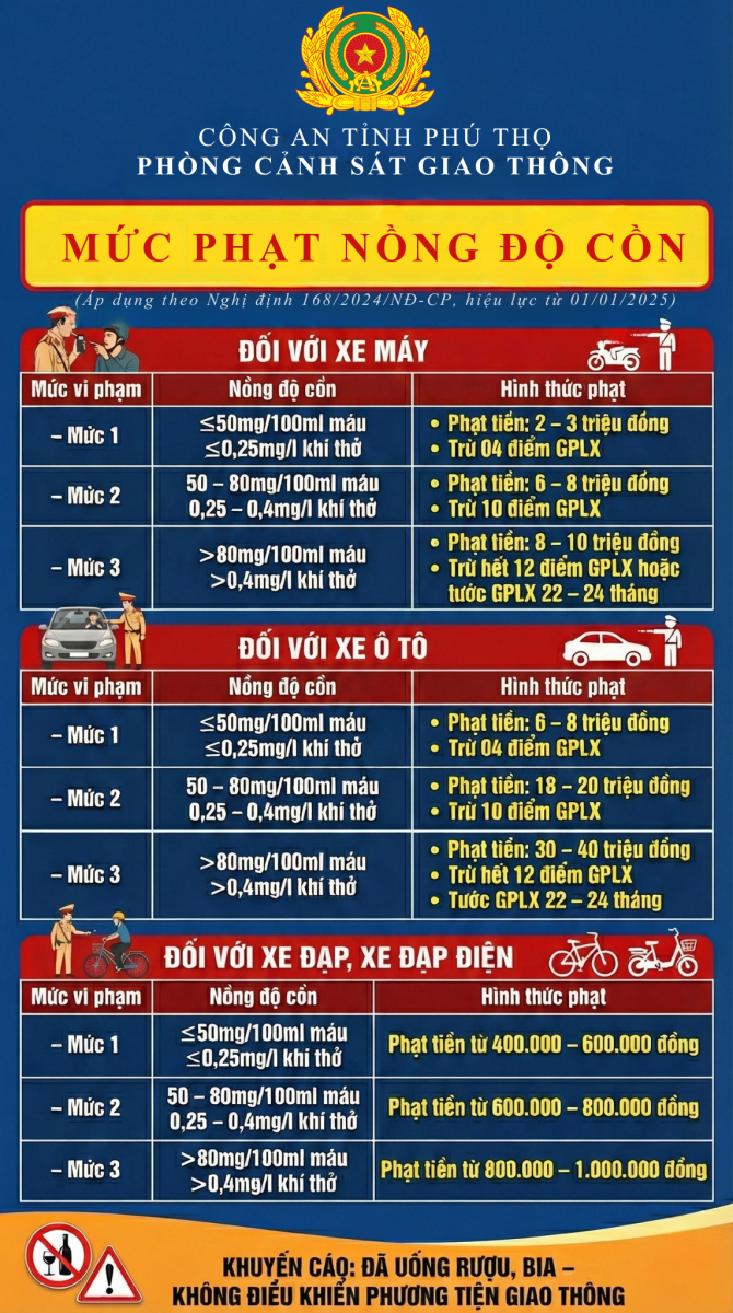 Thời điểm cuối năm và cận Tết Nguyên đán, nhu cầu đi lại, giao lưu, liên hoan của người dân gia tăng, kéo theo nguy cơ mất an toàn giao thông, đặc biệt là các hành vi vi phạm nồng độ cồn khi điều khiển phương tiện. Thực tế cho thấy, vi phạm nồng độ cồn vẫn là một trong những nguyên nhân trực tiếp dẫn đến tai nạn giao thông nghiêm trọng.