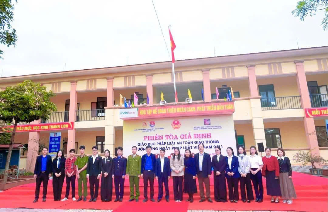Sáng ngày 04/11/2025, hưởng ứng Ngày Pháp luật Việt Nam (09/11), Trung tâm GDNN–GDTX Thanh Thuỷ phối hợp với Đoàn xã Đào Xá, Công an xã Đào Xá và Đoàn Thanh niên Học viện Tòa án tổ chức phiên tòa giả định với chủ đề “Giáo dục pháp luật về an toàn giao thông”.