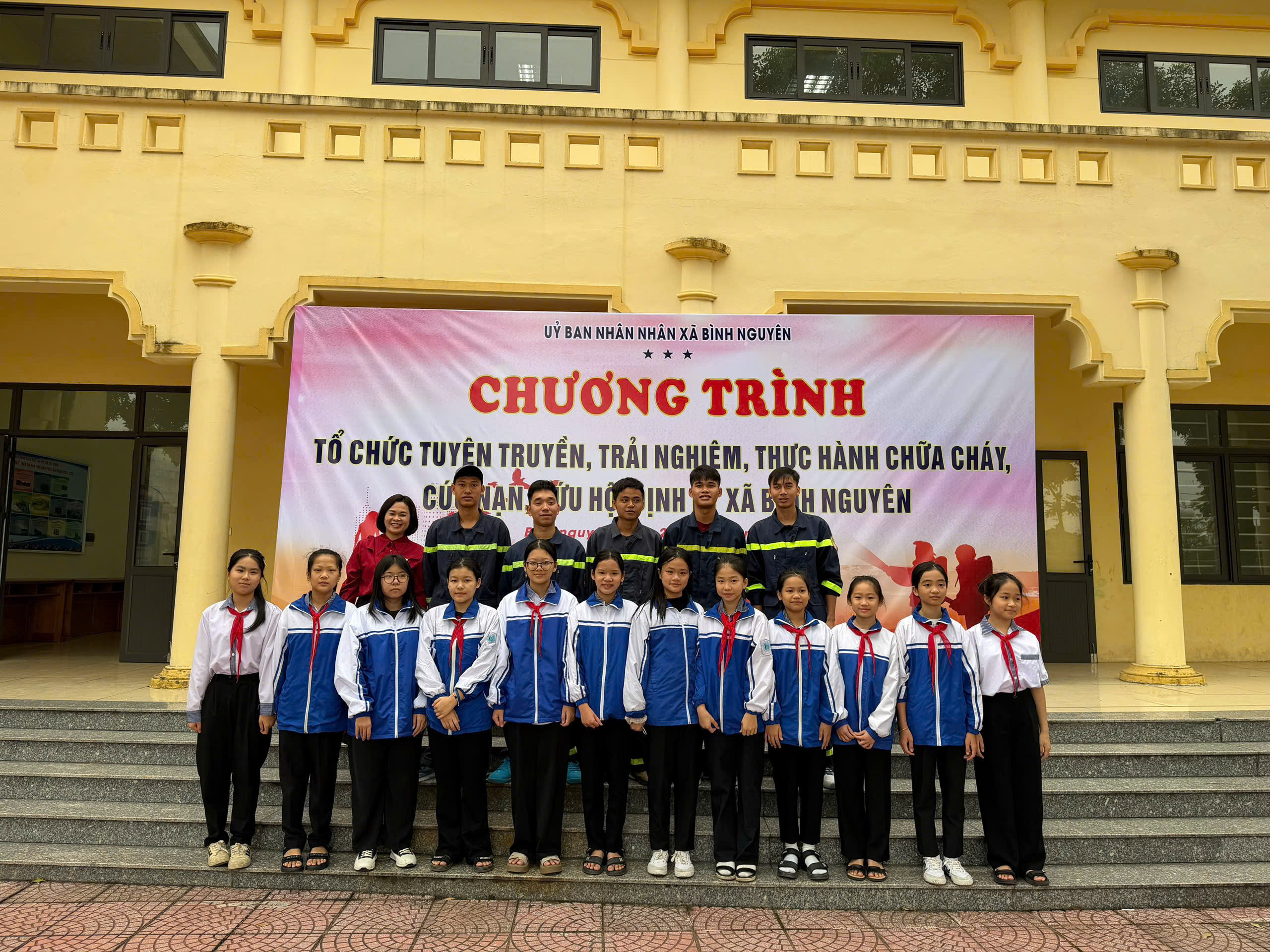 Sáng ngày 25/10/2025, Đội chữa cháy và cứu nạn, cứu hộ khu vực Bình Xuyên (thuộc Phòng Cảnh sát phòng cháy, chữa cháy và cứu nạn, cứu hộ Công an tỉnh Phú Thọ) phối hợp với UBND xã Bình Nguyên phối hợp với tổ chức hoạt động tuyên truyền, trải nghiệm và thực hành kỹ năng về phòng cháy, chữa cháy và cứu nạn, cứu hộ cho cán bộ, đoàn thể và Nhân dân trên địa bàn.