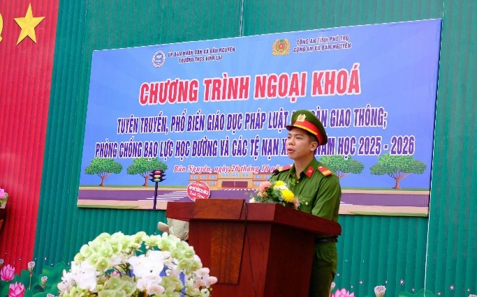 Nhằm nâng cao nhận thức, ý thức chấp hành pháp luật trong lứa tuổi học sinh, góp phần phòng ngừa tai nạn giao thông và bạo lực học đường, Công an xã Bản Nguyên đã phối hợp với các trường THCS trên địa bàn tổ chức buổi ngoại khóa tuyên truyền, phổ biến giáo dục pháp luật về Luật Giao thông đường bộ, phòng chống bạo lực học đường và phòng ngừa tệ nạn xã hội.