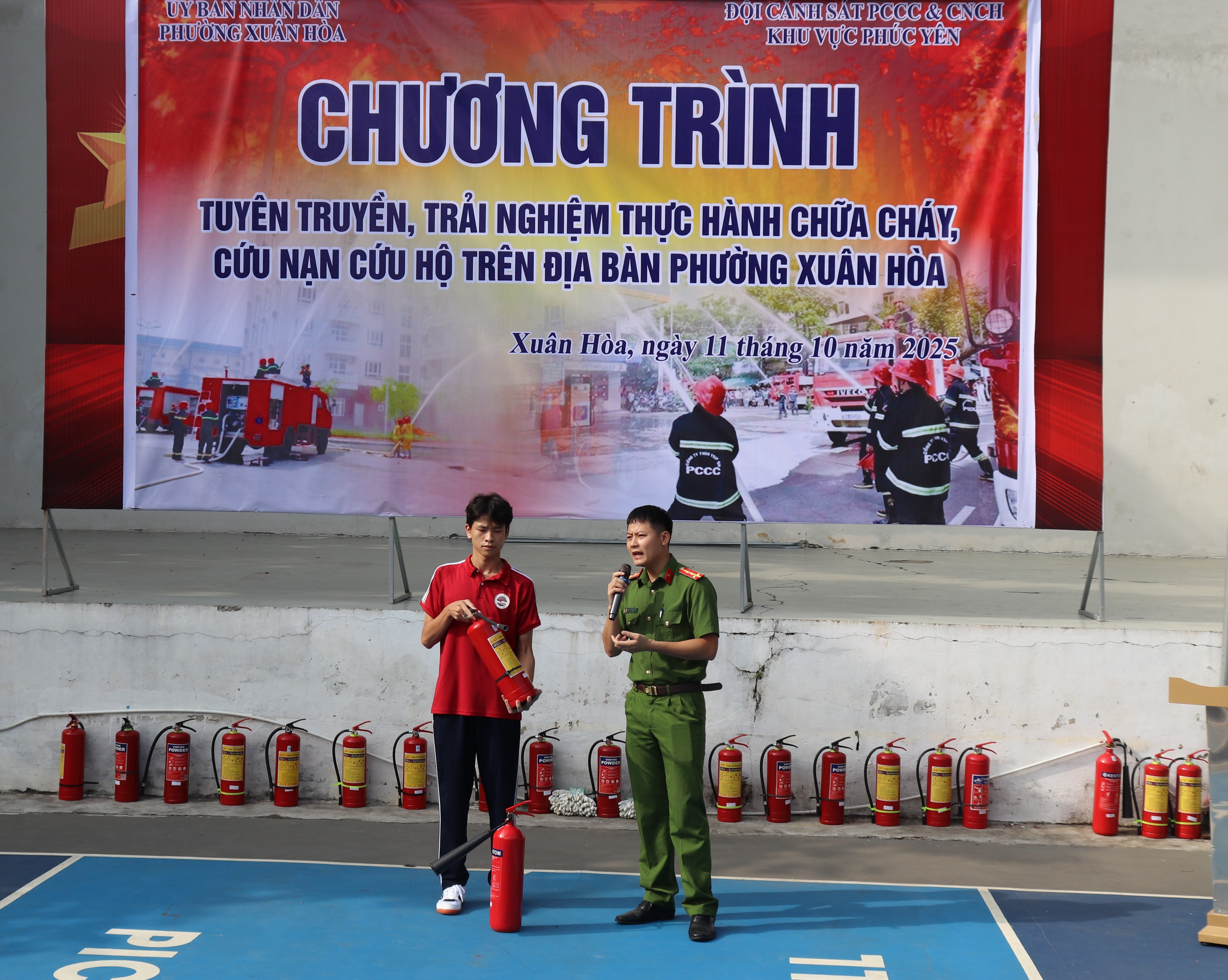 Thực hiện kế hoạch công tác tuyên truyền về phòng cháy, chữa cháy và cứu nạn, cứu hộ (PCCC&CNCH) năm 2025, ngày 11/10/2025, Công an phường Xuân Hòa, tỉnh Phú Thọ đã tham mưu Đảng ủy, Ủy ban nhân dân phường tổ chức Chương trình “Tuyên truyền, trải nghiệm, thực hành chữa cháy, cứu nạn, cứu hộ” trên địa bàn.