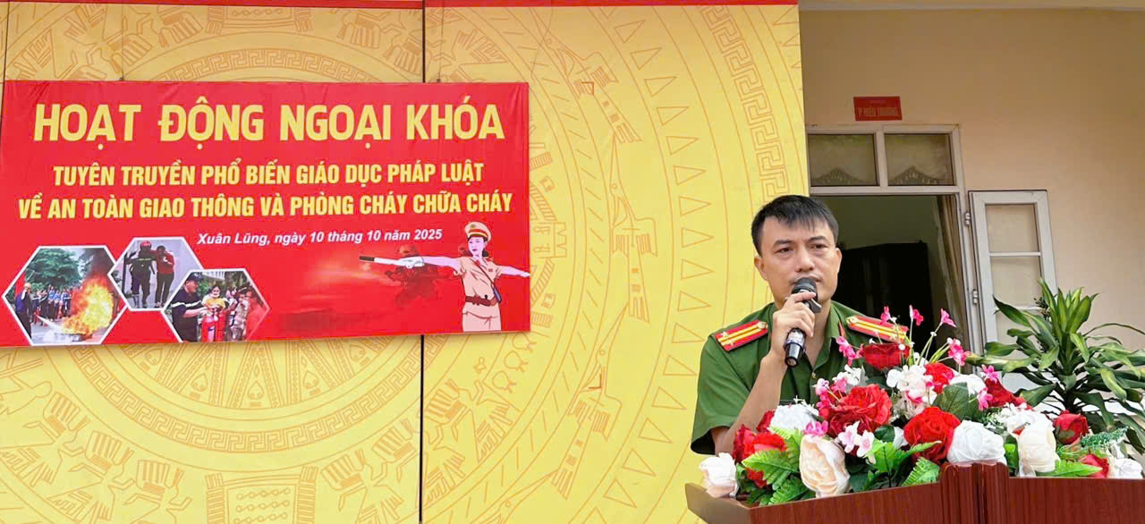 Thực hiện chủ trương tăng cường công tác tuyên truyền, phổ biến, giáo dục pháp luật trong trường học, sáng ngày 10/10/2025, Công an xã Xuân Lũng đã phối hợp với Trường Tiểu học Xuân Lũng tổ chức hoạt động ngoại khóa tuyên truyền về an toàn giao thông và phòng cháy, chữa cháy cho hơn 300 cán bộ, giáo viên và học sinh nhà trường.