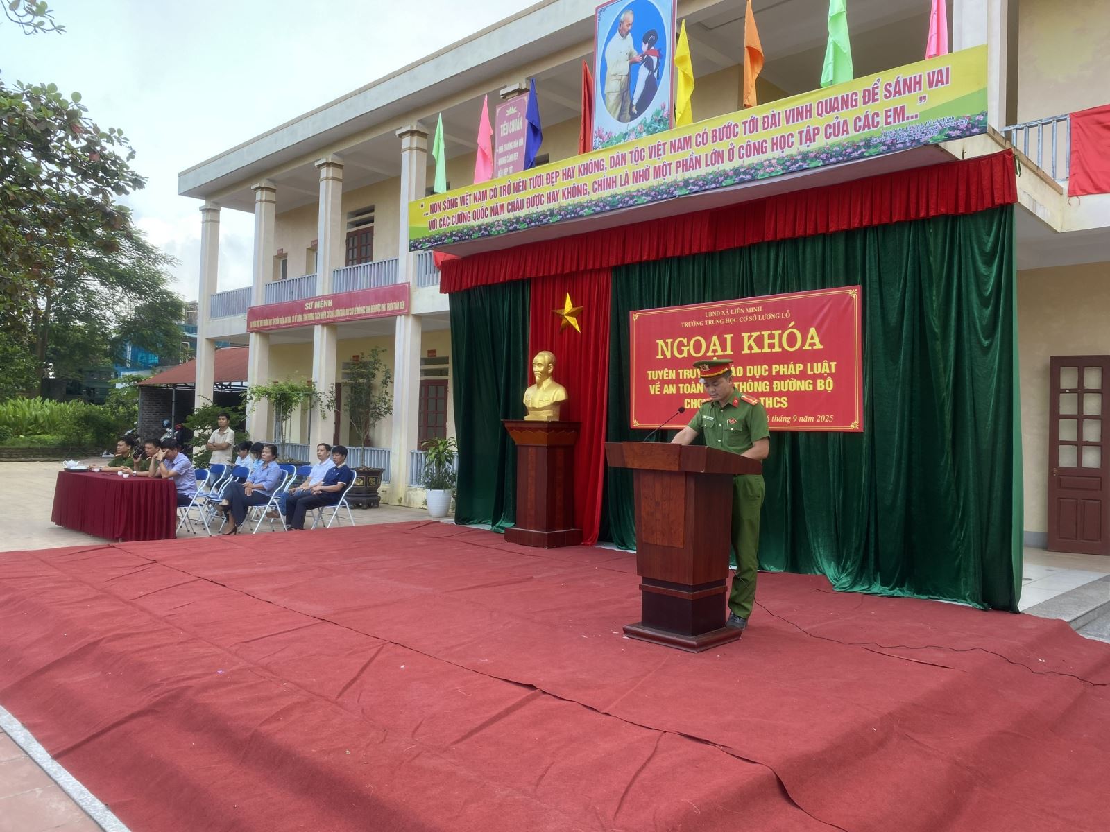 Vừa qua, tổ Cảnh sát trật tự Công an xã Liên Minh đã phối hợp với Trường THCS Lương Lỗ tổ chức buổi tuyên truyền, phổ biến giáo dục pháp luật về trật tự an toàn giao thông cho 25 cán bộ, giáo viên cùng hơn 443 học sinh, nhân dịp đầu năm học mới 2025 – 2026. Đây là một trong những hoạt động trọng tâm nhằm nâng cao nhận thức, hình thành ý thức tự giác chấp hành pháp luật về giao thông ngay từ lứa tuổi học đường.