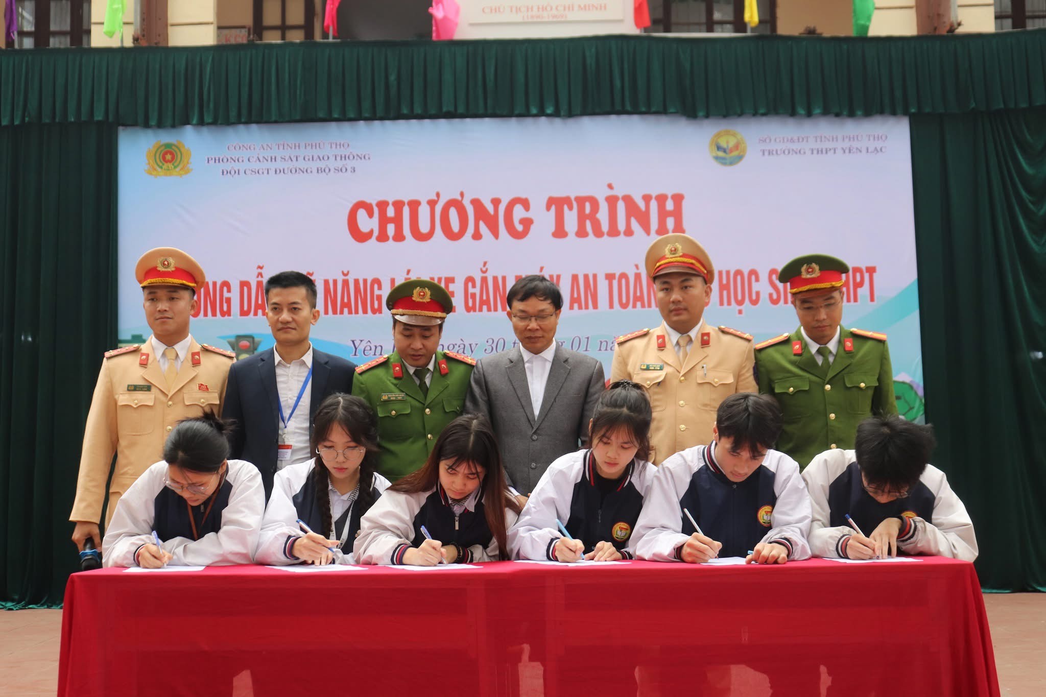 Nhằm nâng cao nhận thức, ý thức chấp hành pháp luật về trật tự an toàn giao thông cho học sinh trước kỳ nghỉ Tết Nguyên đán năm 2026, ngày 30/01/2026, Công an xã Yên Lạc phối hợp Phòng Cảnh sát giao thông Công an tỉnh Phú Thọ tổ chức buổi tuyên truyền, phổ biến kiến thức và hướng dẫn kỹ năng điều khiển xe gắn máy an toàn cho học sinh Trường THPT Yên Lạc. Tham gia chương trình có các thầy, cô giáo trong Hội đồng sư phạm và hơn 1.600 học sinh tham dự.