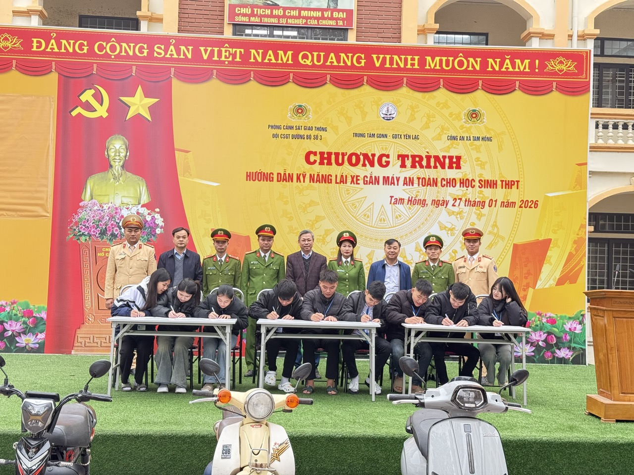 Chiều ngày 28/01/2026, Công an xã Bình Nguyên phối hợp với Đội Cảnh sát giao thông đường bộ số 3 – Phòng Cảnh sát giao thông Công an tỉnh Phú Thọ và Trường THPT Bình Xuyên tổ chức tuyên truyền pháp luật về trật tự, an toàn giao thông và hướng dẫn kỹ năng lái xe an toàn cho học sinh tại sân trường.